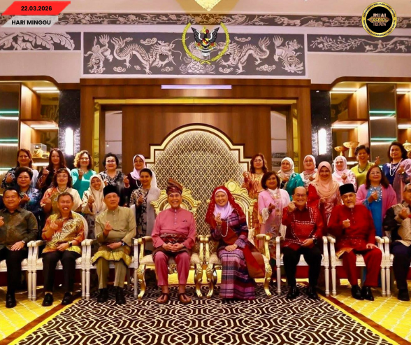 KUCHING, 22 Mac — Pengerami Rumah Tebuka Hari Raya Aidilfitri 1447H/2026 diatur Ketuai Pemegai Menua Tuan Yang Terutama (TYT) Yang di-Pertua Negeri Sarawak Tun Pehin Sri Dr. Haji Wan Junaidi bin Tuanku Jaafar enggau Toh Puan Datuk Patinggi Fauziah binti Mohd Sanusi udah diatur ba kompaun Astana Nengeri Sarawak kemari ngempuruka 25,000 iku temuai datai.