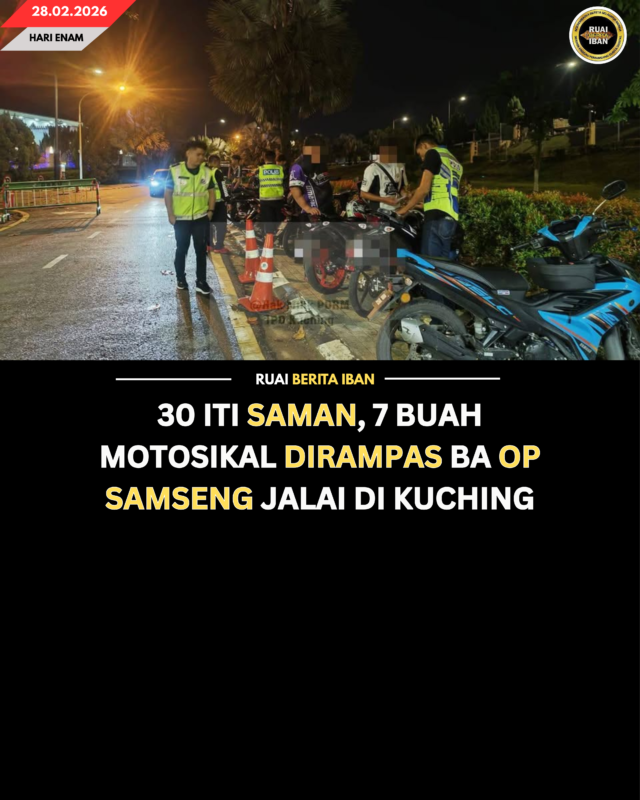 KUCHING, 28 Feb – Sepenyampau 45 iku individu udah diperesa seraya 30 iti saman udah dikeluarka dalam Op Mutosikal (Op Samseng Jalanan) ti dipejalaika Bagi Tasat enggau Penerit Adat Trafik IPD Kuching ari pukul 10 malam nyentuk 2 pagi, kena 27 ngagai 28 Februari tu tadi.