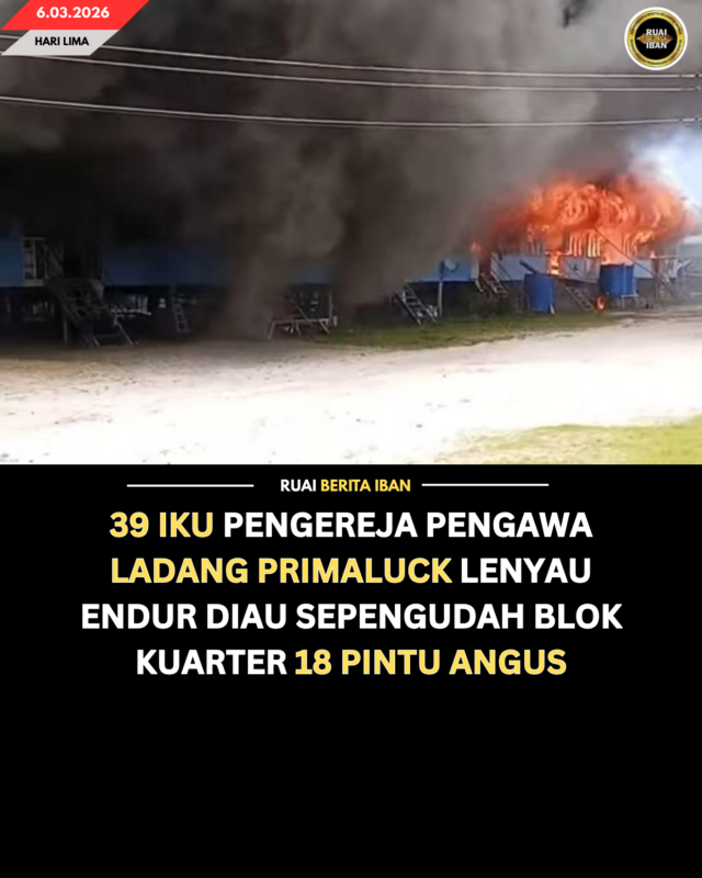MIRI, 6 Mac — Sepenyampau 39 iku orang ke gawa ba Ladang Primaluck lenyau endur diau pengudah sebuah blok kuarter genturung pendiau ke alai sida diau abis angus ba penusah angus ke nyadi tengah hari kemari.