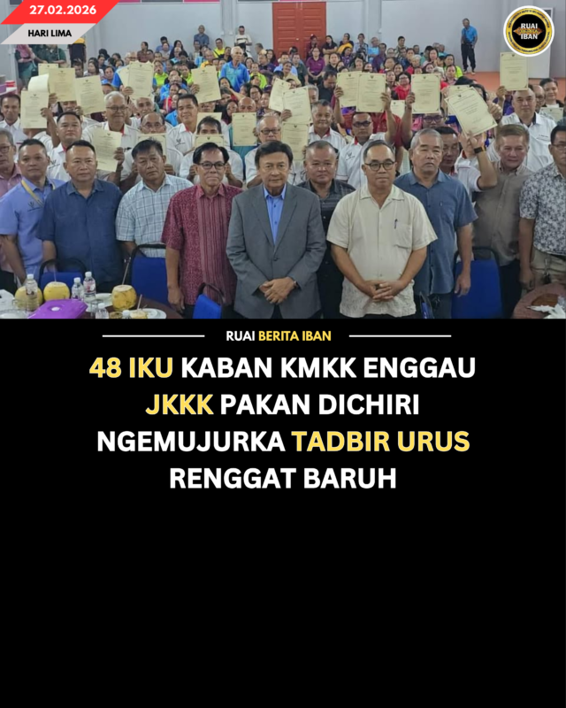 PAKAN, 27 Feb – Sepenyampau 20 iti setipikit nyiri Ketuai Komuniti enggau Ketuai Raban Bansa (KMKK) enggau 28 iti setipikit Komiti Pemansang enggau Pengelikun Genturung Pendiau (JKKK) udah disuaka kemari ba Pengerami Nyuaka Setipikit KMKK enggau JKKK di Dewan Masyarakat Pakan.