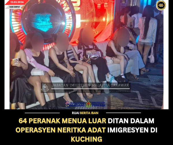 KUCHING, 12 Mac — Sepenyampau 64 iku peranak menua luar ditan dalam operasyen penerit adat besepadu ti dipejalaika Opis Imigresyen Malaysia (JIM) Sarawak ba sekeda endur ngelingi mengeri tu berengkah ari 11 ngagai 12 Mac tu tadi.