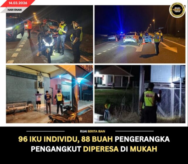 MUKAH 14 Mac – Sepenyampau 96 iku individu enggau 88 buah kerita udah diperesa dalam Ops Nagang Jenayah Bersepadu ti dipejalaika Indu Opis Polis Pelilih (IPD) Mukah, malam ensanus nyentuk tumu pagi tadi.
