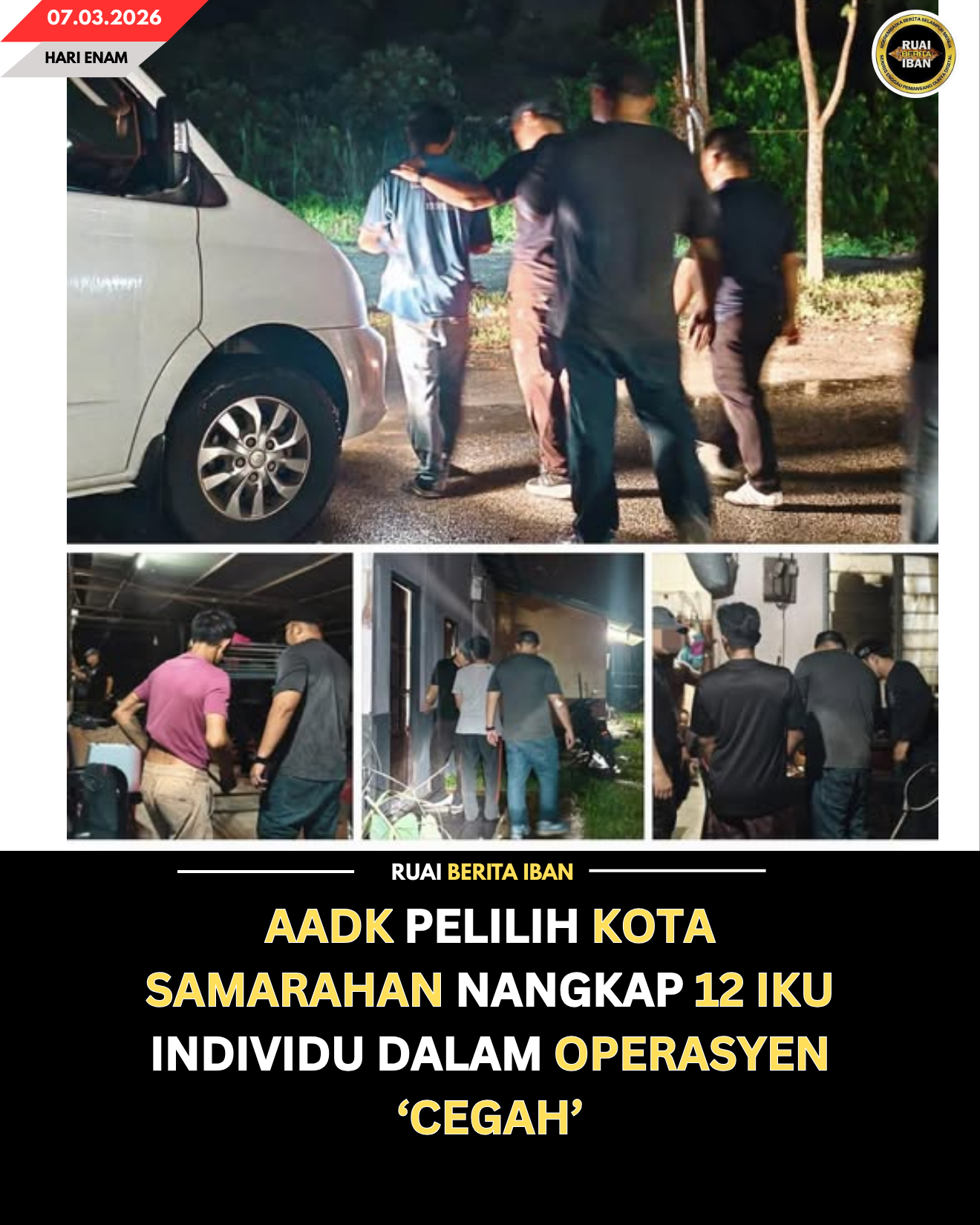 KOTA SAMARAHAN, 5 Mac — Ejensi Anti Dadah Kebangsaan (AADK) Pelilih Kota Samarahan nangkap 12 iku individu dalam Operasyen ‘Cegah’ ti dipejalaika ba sekeda endur ti berisiko ngelingi pelilih nya.