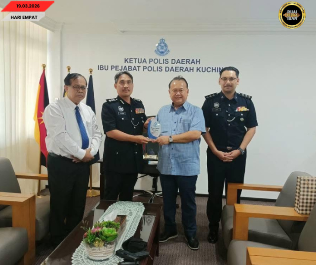 KUCHING, 19 Mac — Ketuai Polis Pelilih Menua Kuching, ACP Alexson Naga Anak Chabu, sehari tu nerima penemuai basa ari Dato Sri Alexander Nanta Linggi, Menteri Kereja Raya, ti ​​mega disempulang Datuk Jefferson Jamit Anak Unyat, Sapit Menteri ba Opis Premier Sarawak.