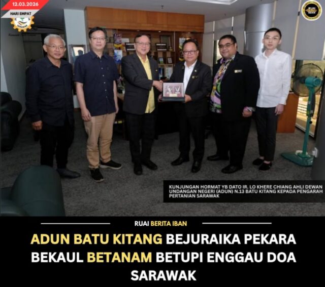 KUCHING, 12 Mac – Pengawa ngenegapka sektor betanam betupi enggau berikan nyengkaum meransang pengawa ngaul pemain industri udah udah dikerandauka lebuh Kaban Kunsil Nengeri (ADUN) sitak N.13 Batu Kitang, Lo Khere Chiang nemuai meri basa ngagai Direktor Betanam Betupi Sarawak, Dominic Anak Chunggat ba Opis Betanam Betupi (Indu Opis) Sarawak, Kuching.