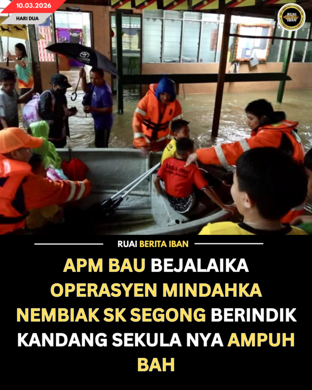 BAU, 10 Mac — Raban Penyaga Pengelikun Mensia Mayuh Malaysia (APM) Pelilih Bau bejalaika pengawa enggau lengkas bejalaika operasyen mindahka nembiak Sekolah Kebangsaan (SK Segong) berindik kandang sekula nya ampuh bah pengudah ujan enda ngengetu ti nuntung pelilih nya.