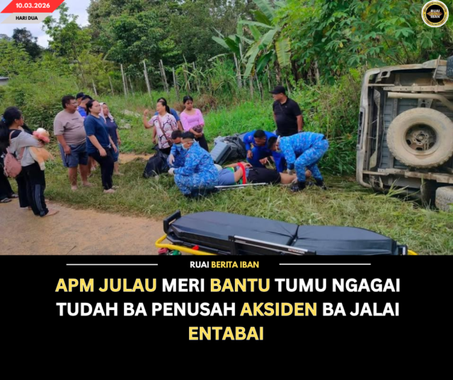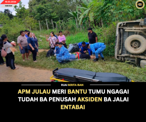 JULAU, 10 Mac — Raban Penyaga Orang Periman Malaysia (APM) Pelilih Julau udah meri bantu tumu ngagai tudah ke dituntung penusah eksiden di Jalai Entabai semak simpang Batu Matop, lemai tu tadi.