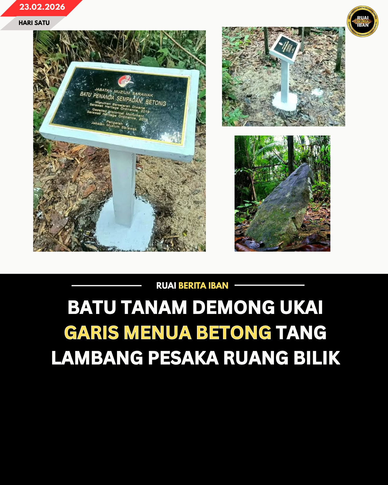 “Iya ngasuh batu nya nyadika tanda garis entara tanah ti deka dipeturunka ngagai anak DULU IYA ENGGAU bini DULU enggau tanah ti deka dipeturunka ngagai anak DUDI bini KE DUDI AGI,” nitihka fakta ti ditulis dalam bup nya ku Chambai.