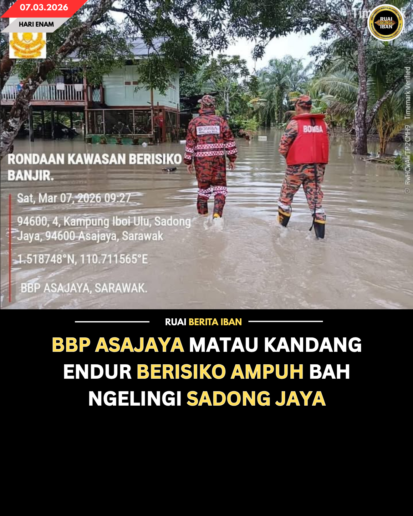 ASAJAYA, 7 Mac — Seraban tim ari Balai Bomba enggau Penyah Penusah Opis Bomba enggau Penyah Penusah Malaysia (JBPM) Asajaya bejalaika pengawa matau ba sekeda kandang endur ke berisiko ampuh bah ngelingi Sadong Jaya sehari tu berindik ari gaya hari ke mendung sereta ujan enda ngengetu.