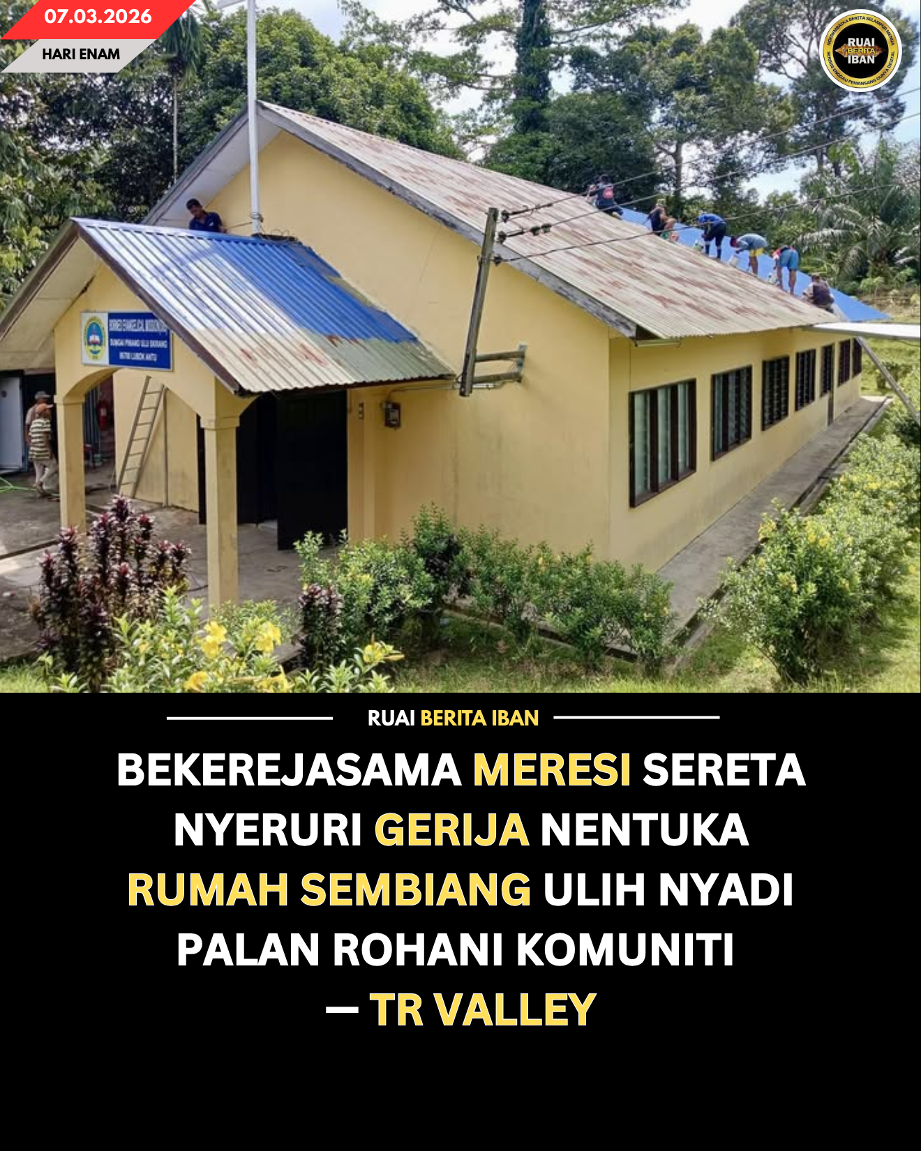 SRI AMAN, 7 Mac — Peranak Kampung Sungai Pinang, Ulu Skrang udah bekerejasama meresi sereta nyeruri gerija dalam pengawa nentuka rumah sembiang nya terus befungsyen nyadi palan rohani ungkup komuniti besemak.