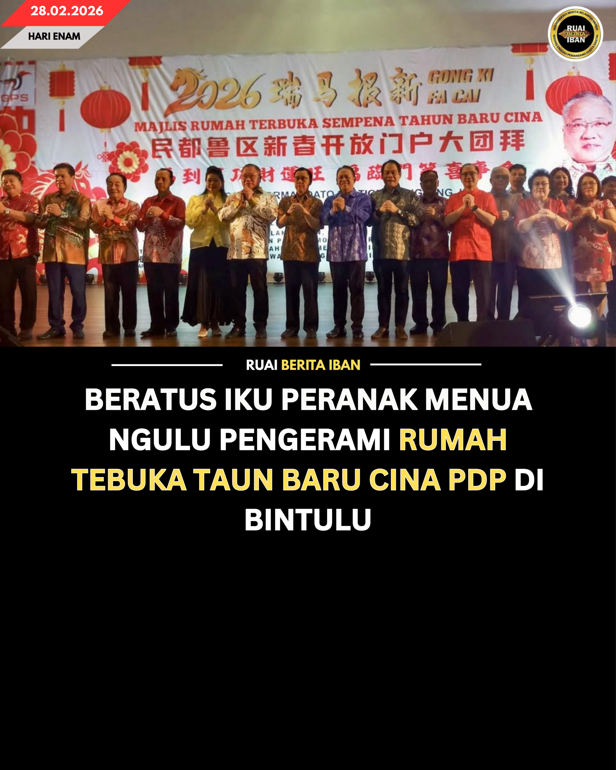 BINTULU, 28 Feb — Dewan Suarah Bintulu richah enggau penatai beratus iku peranak menua nya beserimbai enggau Rumah Tebuka Taun Baru China ke diatur Parti Demokratik Progresif (PDP), ke nyadi sehari tu.
