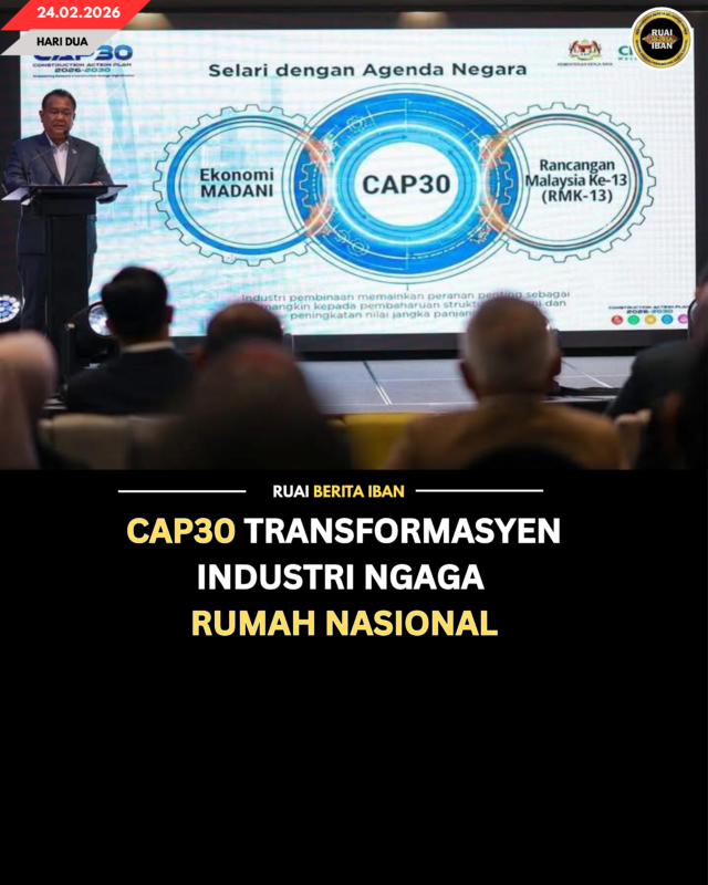 Menteri Kereja Raya, Dato Sri Alexander Nanta Linggi madah, pengawa ngelancharka Pelin Tindakan Pembinaan 2026–2030 (CAP30) sehari tu nyadi pelasar strategik dalam ngaga industri ngaga rumah Malaysia ti lebih efisyen, inovatif sereta nyikap diri ti sedia napi ubah rampa ekonomi enggau teknologi.