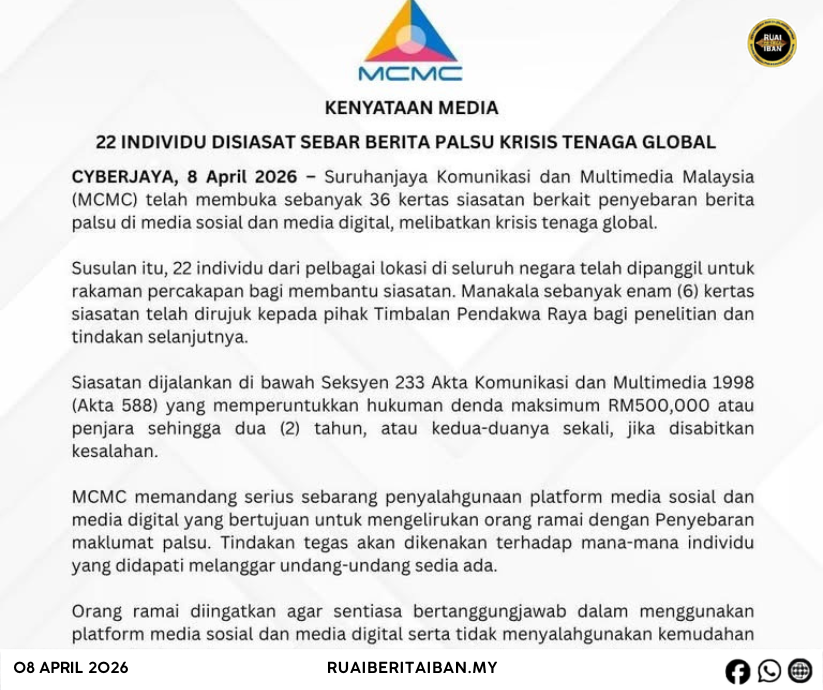 CYBERJAYA, 8 April – Suruhanjaya Komunikasyen enggau Multimedia Malaysia (SKMM) udah muka 36 keretas pansik bekaul enggau pengawa ngerembaika berita pelesu bekaul enggau krisis kuasa global ba media rama enggau pelasar digital.