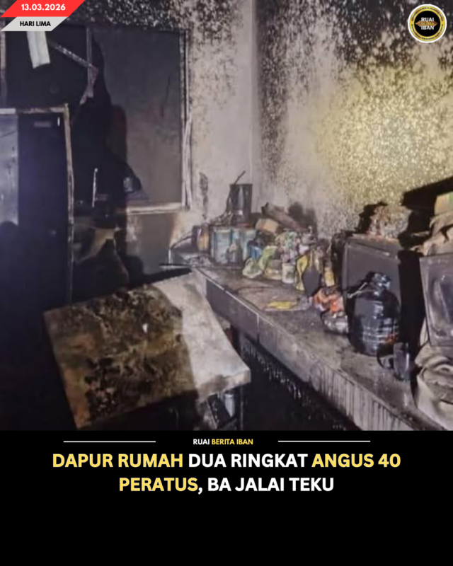 SIBU, 13 Mac – Sebuah rumah tetap dua ringkat di Jalai Teku diripotka napi pengerusak urung 40 peratus pengudah teparuk enggau penusah angus ti berengkah angus ba dapur, urung pukul 1.30 pagi tadi.