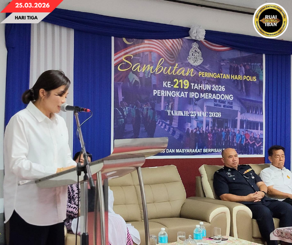 Dulu agi ari nya, iya meri besai terima kasih ngagai raban polis di Meradong sereta serata menua ketegal komitmen sida ti seruran bejalaika pengawa nyaga pengelikun peranak, lalu enggau nya ngemuntangka komuniti ngasaika pengidup ti lantang asil ari kerejasama rat entara polis enggau komuniti menua nya.