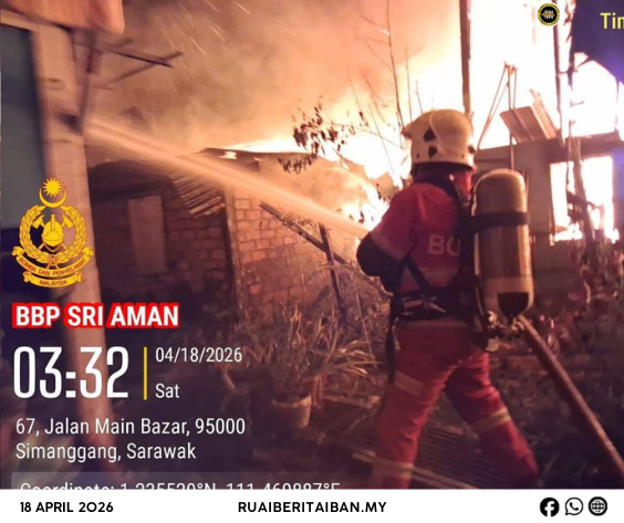 Nitihka penerang ari Opis Bomba enggau Penyah Penusah Malaysia (JBPM) Sarawak, kangau ngenyit diterima urung pukul 3.18 pagi sebedau tim ari Balai Bomba enggau Penyah Penusah Sri Aman dianjung ngelawa palan nya enggau Tender Penyah Penusah Bomba (FRT) enggau unit Servis Penyah Penusah Perubat Ngenyit (EMRS).