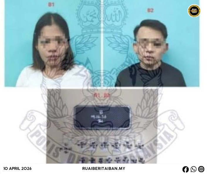 BAU, 10 April – Siku lelaki enggau siku indu ditan raban Bagi Tasat Jenayah Narkotik Pelilih Bau ba pengawa ngenyit ba sebuah langkau kayu di Jalai Serasot Utama B, urung pukul 8.30 malam kemari.