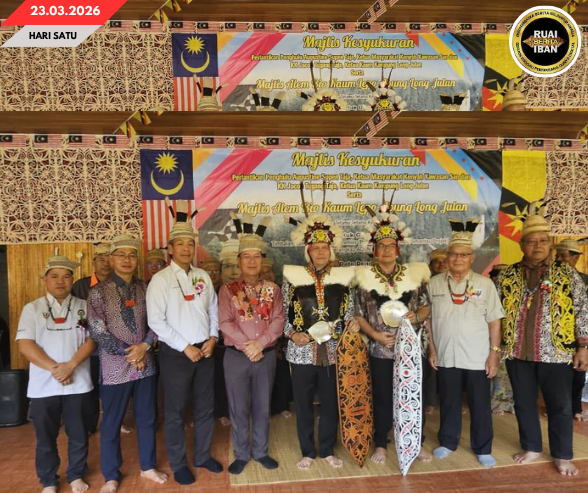 “Aku andal amat nengah peneleba, komitmen enggau semengat nyadi ketuai, Penghulu Augustine Supen Taja enggau Ketuai Kaum Jacob Tugang ulih bejalaika tanggungpengawa sida enggau manah ungkup pengelantang enggau penyulut komuniti ditu,” ku iya nambah.