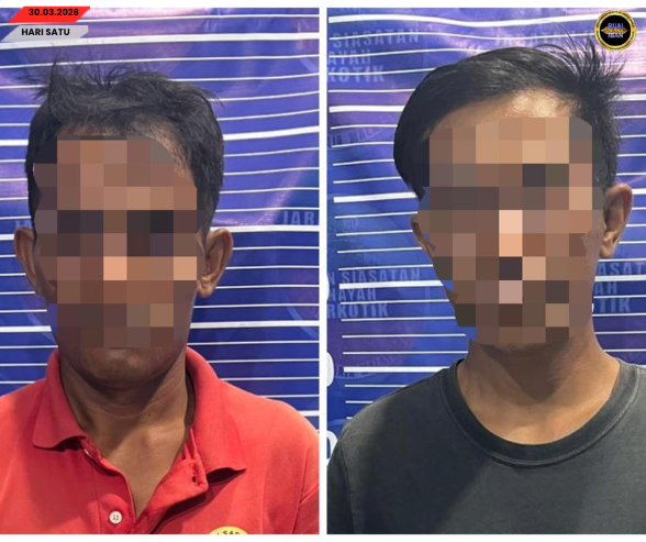 Nitihku iya, kededua saspek ke beumur 36 enggau 31 taun nya ditan urung pukul 5.50 lemai tadi ba kandang menua Bintangor ketegal dipelabaka bisi kaul enggau aktiviti salah guna dadah sebedau dibai ngagai IPD Meradong ngambika atur silik agi dipejalaika.