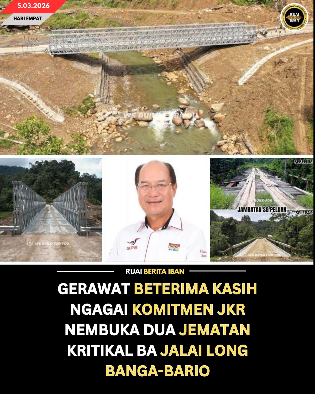 GERAWAT BETERIMA KASIH NGAGAI KOMITMEN JKR NEMBUKA DUA JEMATAN KRITIKAL BA JALAI LONG BANGA-BARIO