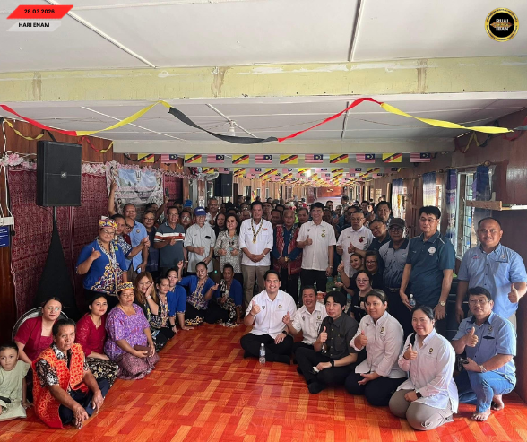 Pengerami bejadika pengawa nya bela digulu Pemangku Pemesai Pelilih Menua Bintulu, Puan Suzana Indiat; Injinir Opis Kereja Raya Bagi Menua Bintulu, Ir. Lau Sie Digantung; Penghulu Man Imbak; Penghulu Sulang Arah; Penghulu Raini kelimpah bala ketuai raban bansa ari kandang menua Suai enggau Bintulu-Samalaju. — RBI