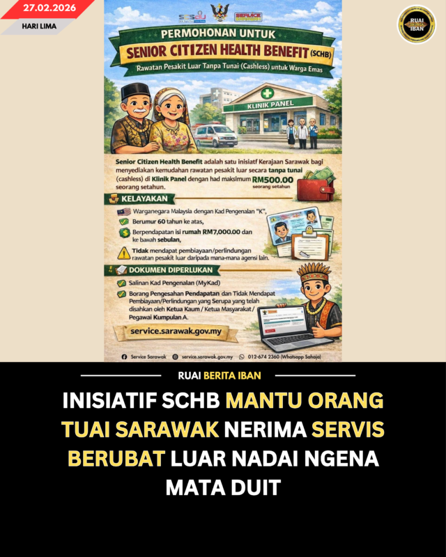 INISIATIF SCHB MANTU ORANG TUAI SARAWAK NERIMA SERVIS BERUBAT LUAR NADAI NGENA MATA DUIT