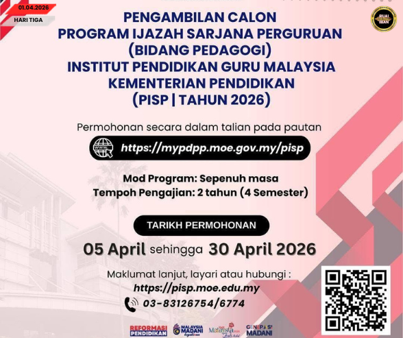 Home newsiban Jaku gerah pengawa ngambi chalun newsiban Jaku gerah pengawa ngambi chalun By ZHD - April 1, 2026 93 0 FacebookTwitterPinterestWhatsApp Program Ijazah Sarjana Perguruan (Bidang Pedagogi) Palan Pematih Pengajar (IPG) Malaysia Opis Pelajar (PISP Taun 2026).