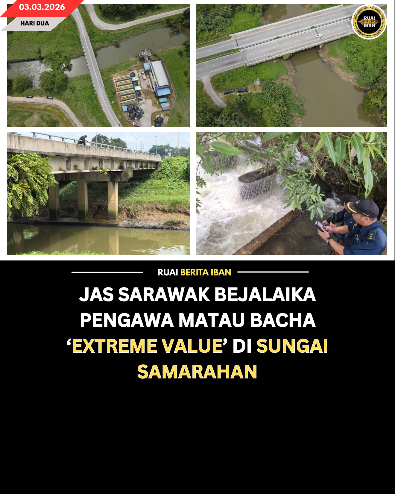 KUCHING, 3 Mac — Opis Rampa Menua (JAS) Sarawak, kemari udah bejalaika pengawa matau nangkan nya dikena ngelala kebuah ti tau nyadi ketegal bacha ba Stesyen Pematau Kualiti Ai Manual Sungai di Sungai Samarahan manggai ba ‘extreme value’.