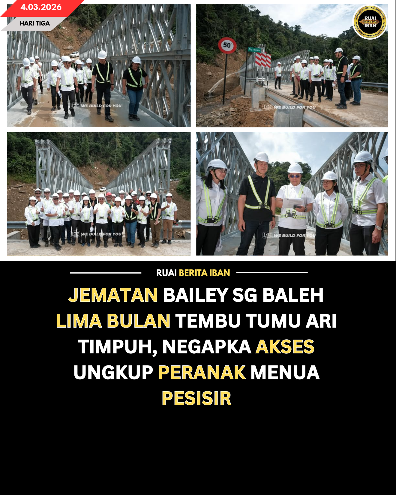 BARAM, 4 Mac — Direktor Kereja Raya Sarawak, YBhg Datu Adj Prof Ir Ts Gs Br PMr Dr Cassidy anak Morris udah bejalaika Penemuai Seraya Gawa, meresa dikena beratika baru pejalai Projek Pemasang Jematan Baru Bailey meraka Sungai Baleh di Baram.