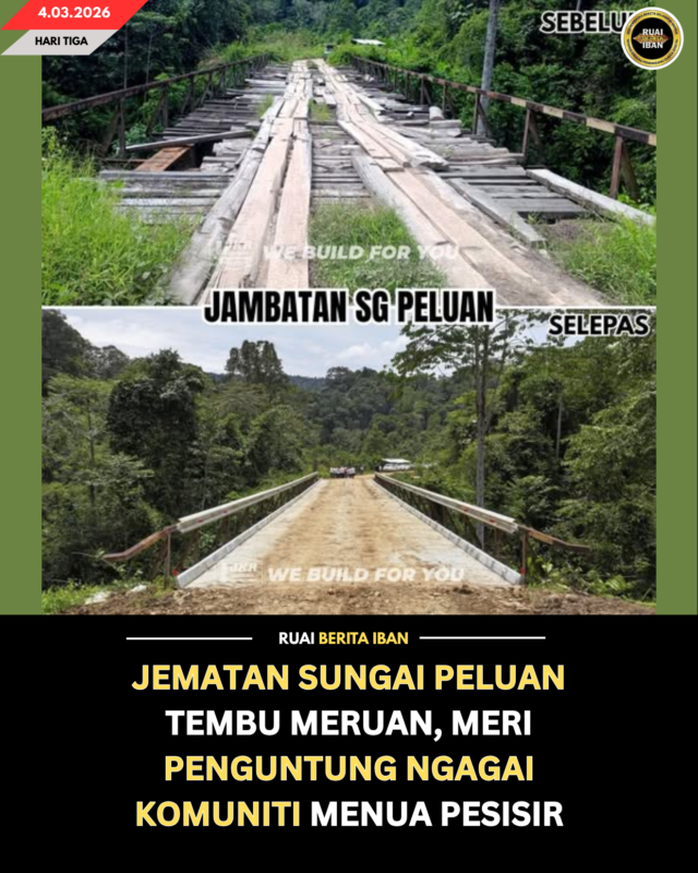 “Pengawa ngaga jematan tu ngemuntangka pemindah komuniti menua pesisir sereta ngangkatka tikas pengelikun enggau penyambung rentayan jalai alun di menua pesisir,” ku penerang nya nambah.