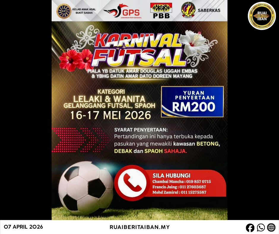 SPAOH, 7 April — Karnival Futsal N.37 Bukit Saban deka diatur baru kena 16 enggau 17 Mei 2026 ba Gelanggang Futsal, Spaoh, lalu dikearap ulih ngerichahka arena lumba enggau main komuniti di kandang menua nya.