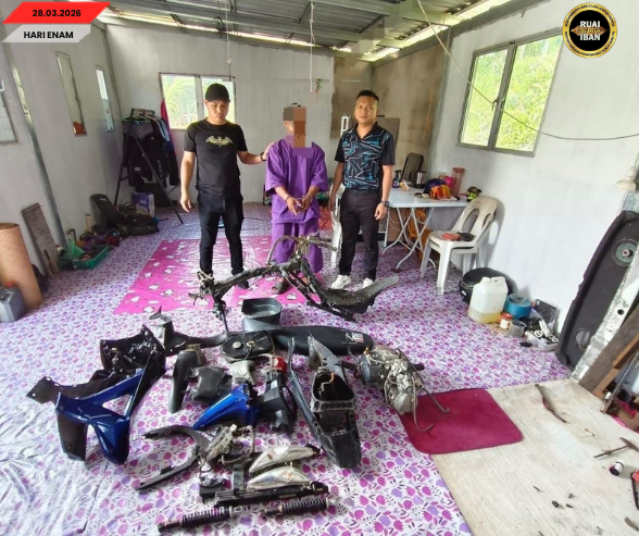 Saspek ngaku udah ngererak komponen mutosikal nya lalu disimpan ba palan pengentap pendiau iya.