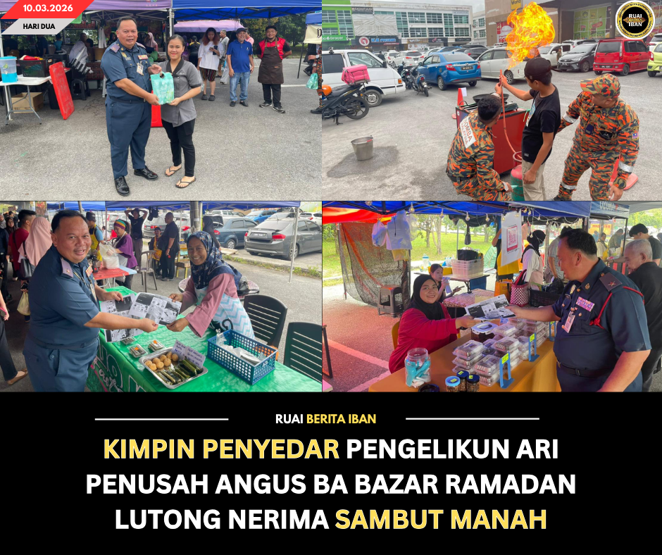 MIRI, 10 Mac – Balai Bomba enggau Penyah Penusah (BBP) Lutong udah ngatur Kimpin Penyedar Pengelikun Penusah Angus enggau demonstrasyen ngena perengka pengerara api ungkup mensia mayuh ba Bazar Ramadan Lutong, palan entepan kerita New World Mart (Miri) Sdn Bhd, seharitu tu tadi.