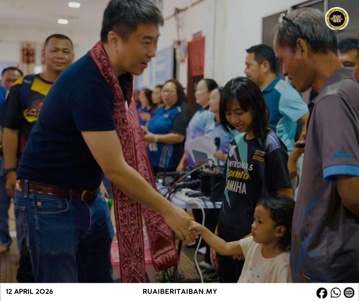 JULAU, 12 April 2026 – Kaban Parlimen Julau, Datuk Larry Sng Wei Shien minta komuniti rumah panjai di Nanga Dong ngerebut peluang dalam sektor dagang temuai komuniti nengah chara ngemansangka rumah dagang temuai dikena ngulihka penatai pemisi tambah.