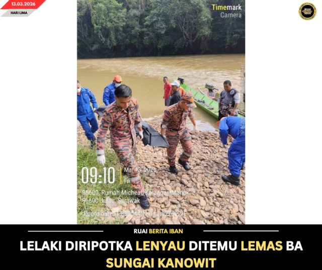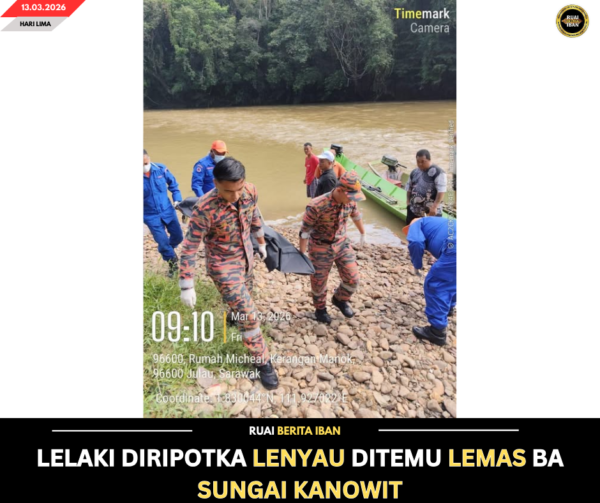 JULAU, 13 Mac – Lelaki ke diripotka lenyau pengudah nurun berikan di Sungai Kanowit, Nanga Sebuloh ditu ditemu lemas ulih peranak rumah panjai pagi tadi.