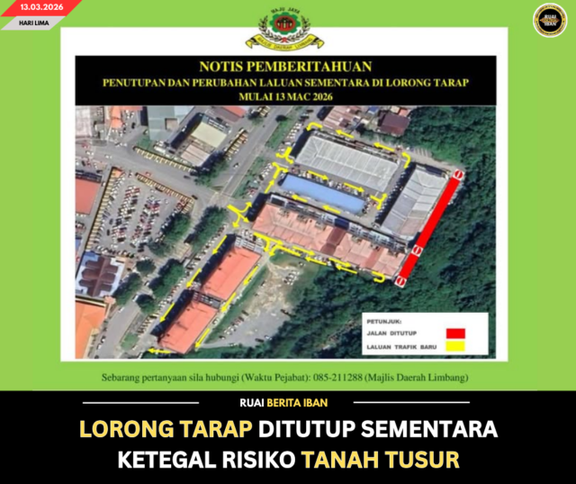 LIMBANG, 13 Mac — Lorong Tarap ke bepalan ba belakang begunan Choon Cheong deka ditutup sementara ngagai semua penguna jalai alun berengkah sehari tu nyentuk ke haribulan ke deka dipadah.