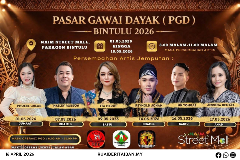 BINTULU, 16 April — Pengerami Gawai Dayak taun tu di Bintulu deka dirichahka agi enggau pengawa ngatur Pasar Gawai Dayak Bintulu 2026 (PGD Bintulu 2026) ke deka diatur pengelama 18 hari berengkah ari 1 Mei nyentuk 18 Mei 2026 ba NAIM Street Mall, Paragon Bintulu.