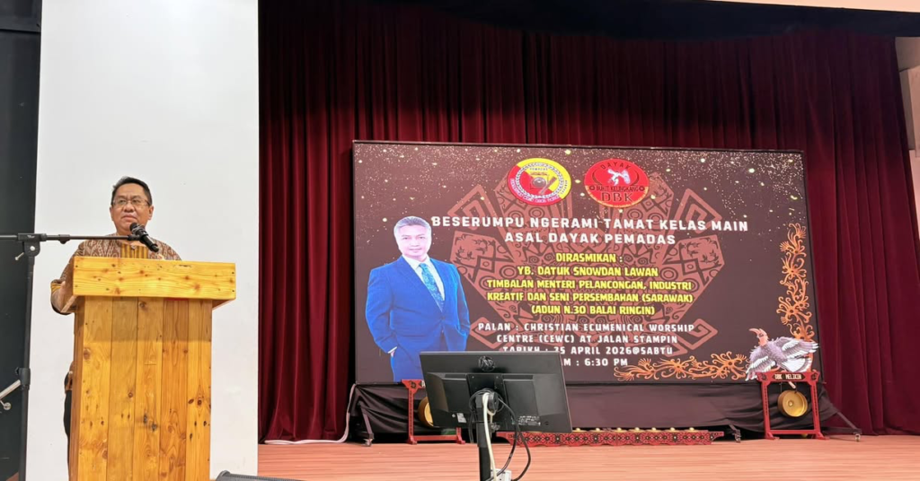 “Kami amat beterima kasih ngagai pengeran YB Datuk Snowdan Lawan nyadi Penaung Gerempung Main Asal Dayak Sarawak (PEMADAS).”