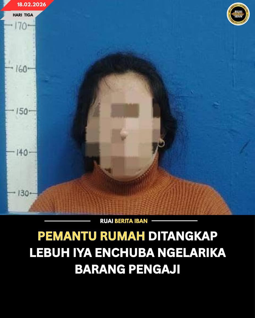 MIRI, 18 Feb — Pengawa jampat siku pengaji ngaga ripot polis bekaul enggau insiden enchuri ba palan pengentap pendiau iya ngujungka siku indu peranak Indonesia ke beumur 36 taun dipelabaka ngelarika diri mai barang berega pengaji iya ditangkap.