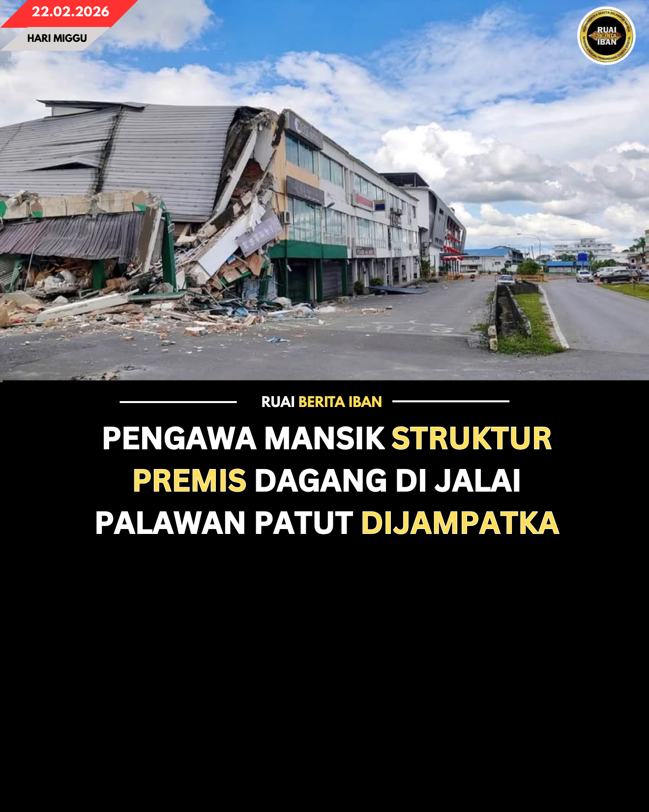 SIBU, 22 Feb – Isu pengelikun mensia mayuh meseti nyadi pekara dikemeratka berindik ari penusah struktur runtuh ti ngaul sebuah begunan kedai di Palan Komersil Palawan, enggau pansik teknikal ‘bebas’ sereta komprehensif dipejalaika tekala nya sebedau sebarang pengawa meresi dipejalaika.