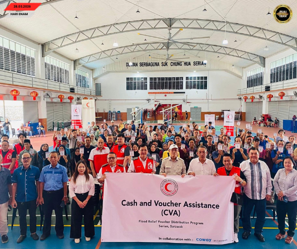Program ke diatur Bulan Sabit Merah Malaysia Pampang Serian nya meda bisi 178 iku penerima ari 12 buah genturung pendiau bisi datai nerima bantu dalam tukuh Bantu Tunai enggau Baucher (CVA).