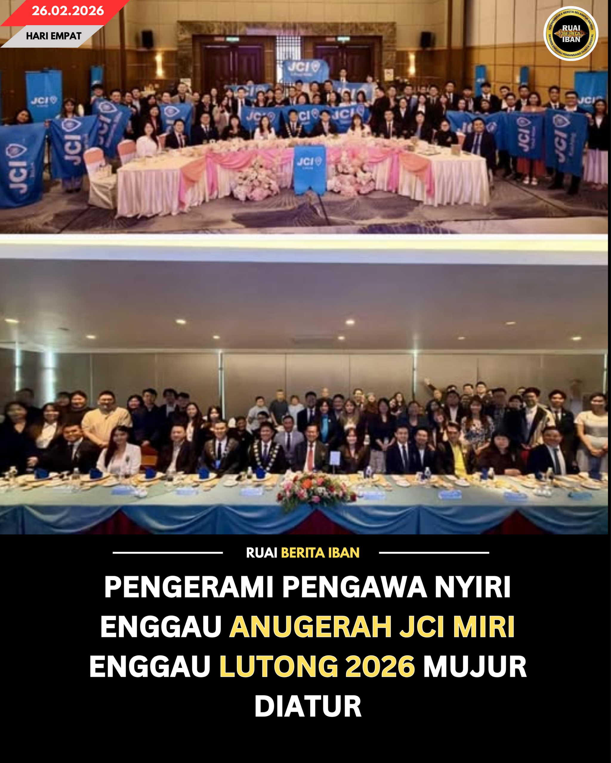 MIRI, 26 Feb — Pemesai Opis Nembiak enggau Lumba Bagi Menua Miri Encik Roley anak Lagir, ngulu Pengerami Pengawa Nyiri enggau Anugerah Junior Chamber International (JCI) Miri enggau Lutong 2026 ungkup taun 2026 ti udah nyadi minggu nyin tadi.