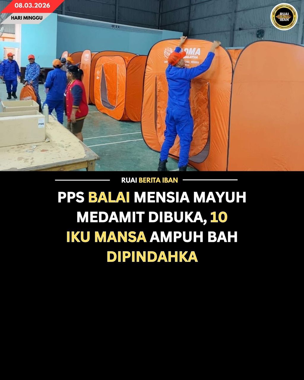 LIMBANG, 8 Mac — Palan Pengenduh Sementara (PPS) ba Balai Mensia Mayuh Medamit ditu dibuka urung pukul 11.30 malam, Hari Enam dikena nampung sida ke tasah ampuh bah ari kandang Ujung Jalai ti dituntung ujan bangat enda ngengetu kenyau ari malam Hari Lima tu tadi.