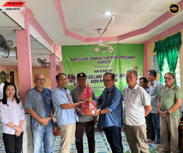 JULAU, 5 Mac 2026 — Kaban Kunsil Nengeri (ADUN) Meluan, Dato Rolland Duat Jubin ngemeratka pemesai guna Program Outreach Komuniti Betanam Betupi (Agricop) nyadi pelasar dikena ngenegapka penemu enggau pengelandik orang bumai menua pesisir.