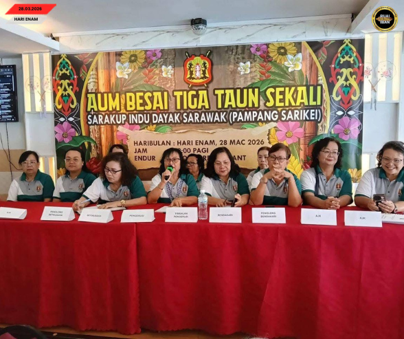 SARIKEI, 28 Mac — Program Aum Besai Tiga Taun Sekali Ke-28 ungkup Serakup Dayak Indu Sarawak (SIDS) Pampang Sarikei udah mujur diatur ba Honey Restaurant, berengkah ari pukul 9.00 pagi ti digulu 130 iku raban.