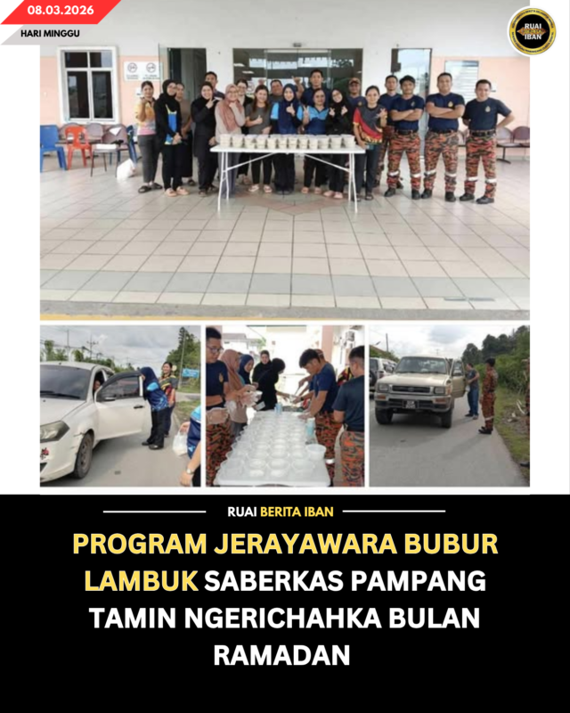 SELANGAU, 8 Mac — Program Jerayawara Bubur Lambuk ke diatur Saberkas Pampang Tamin udah diatur kena Hari Enam, 7 Mac 2026, pukul 4.00 lemai beserimbai enggau pengerami ngintu bulan Ramadan taun tu.