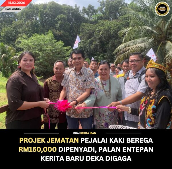 KANOWIT, 15 Mac – Projek ngaga jematan pejalai kaki ke beungkus RM150,000 di Rumah Kulih Jete, Nanga Seperu Sungai Ngemah mujur tembu sereta dipenyadika ba Aum Ketuai enggau Rayat ke diatur sehari tu.