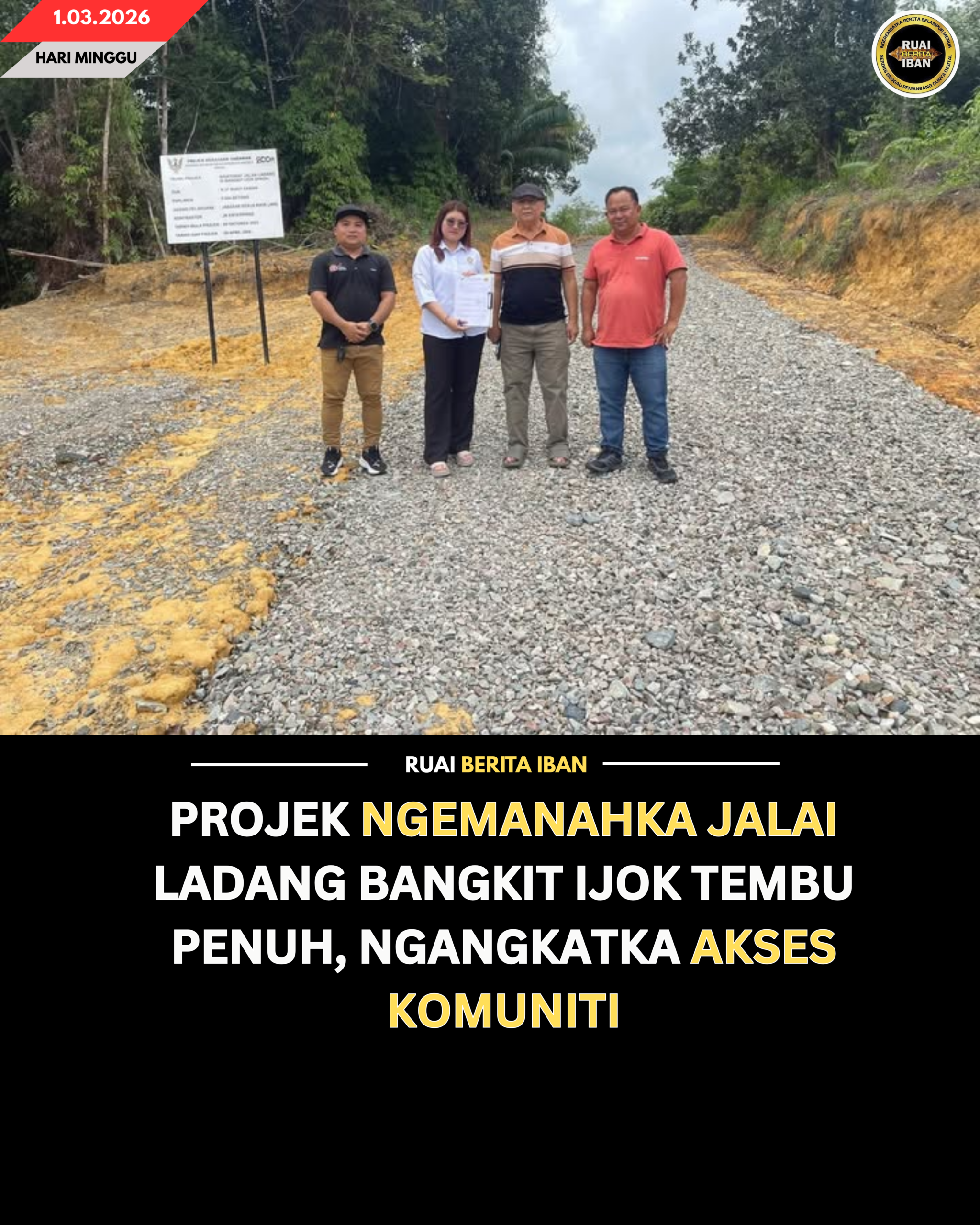 SPAOH, 1 Mac — Projek ngemanahka jalai ladang ba Kandang menua Rumah Panjai Tuai Rumah Adrian Luat, Bangkit Ijok, di Spaoh udah tembu penuh lalu udah diserah ngagai komuniti menua nya, kena Hari Dua kelai siti agi pemujur dalam pemansang infrastruktur menua pesisir di kandang menua nya.