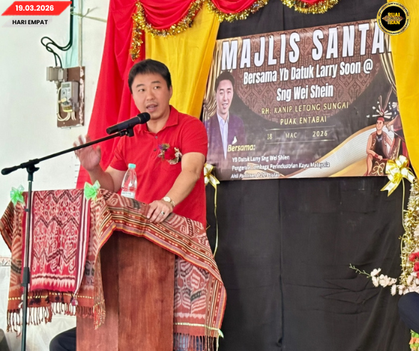 Chairman Kaunsil Industri Kayu Ramu Malaysia (MTIB) ke mega Kaban Parlimen Julau, Datuk Larry Sng Wei Shien nyemetak madah, pemujur sesebengkah projek bepanggai ba kerejasama semua piak, ukai semina sekeda individu aja.