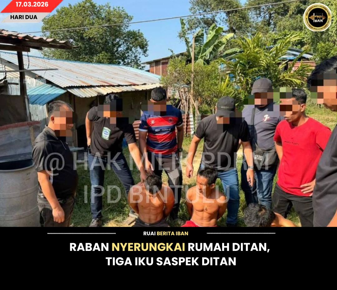 BINTULU, 17 Mac – Polis udah mujur ngetanka raban penyerungkai rumah ke nagit rumah ke nadai orang nguan pengudah ngetan tiga iku lelaki peranak menua nya dalam operasyen khas ‘Op Pintu’ kemari.